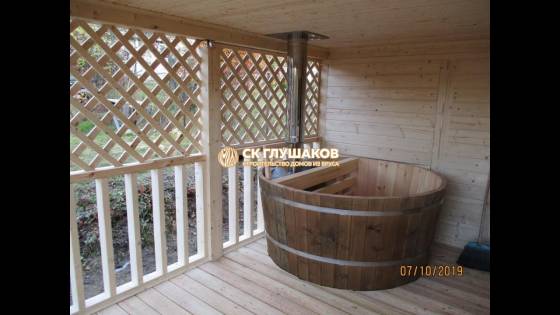 У нас роскошные бани, но даже их можно сделать ещё лучше. Самый простой способ — установить купель для бани! Можно прямо на террасе. На фото пример такого сочетания. Идеально :)