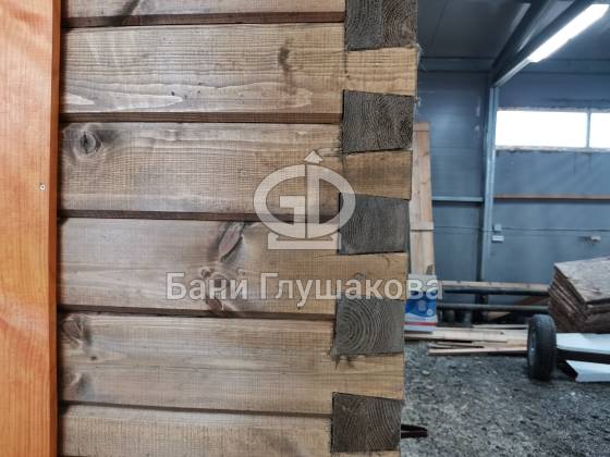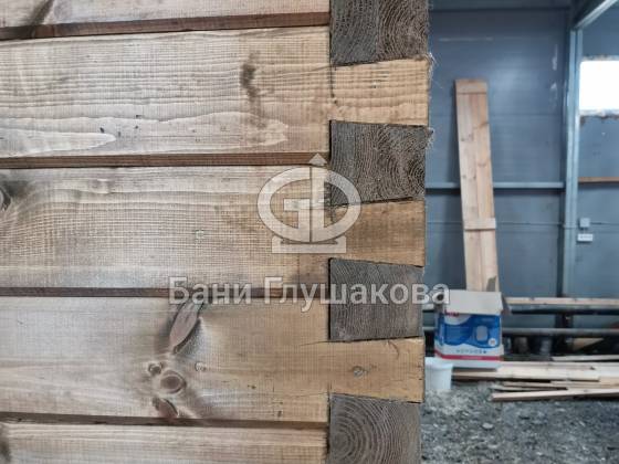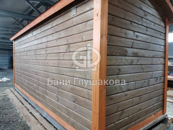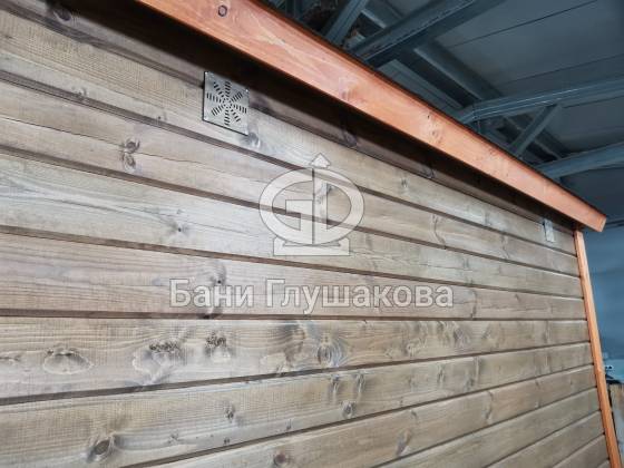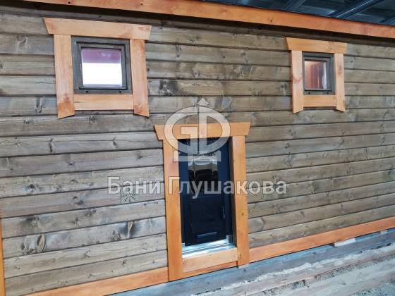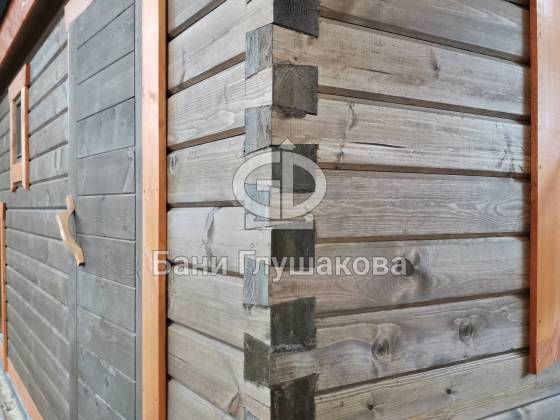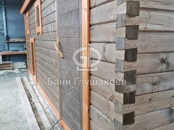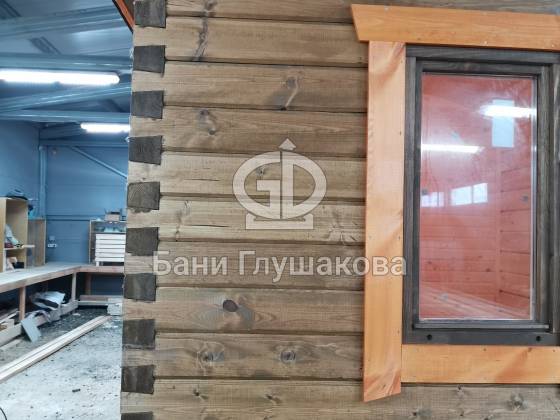 Баня 6м из бруса клееного выполнена в ласточкин хвост. Цвет биотекс Орех и обводка клен