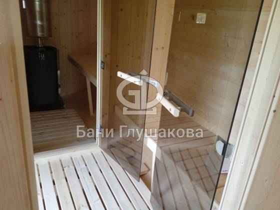 Микро-квадробочка с выносной топкой на улицу – это решение в конкретной бане максимально оправдано, так как помогает экономить ценное пространство внутри.