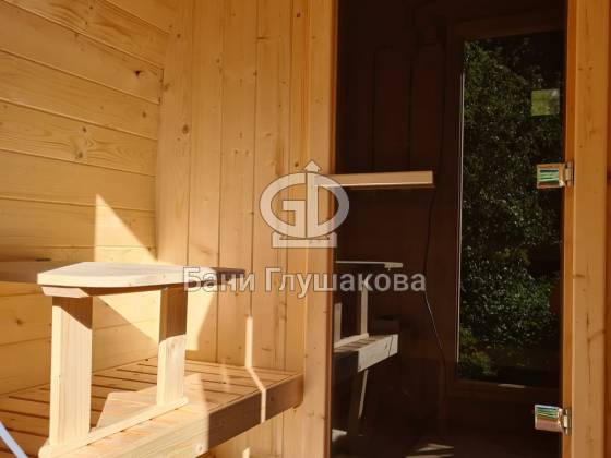 Баня изготовлена из ёлки. Размер 2,3 на 4 метра. На 2 отделения.