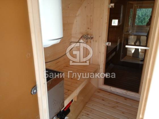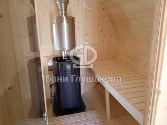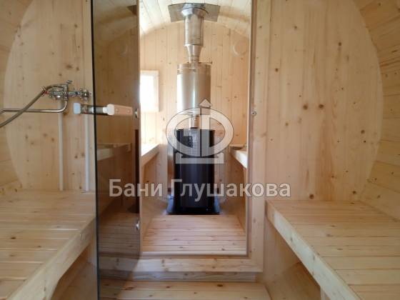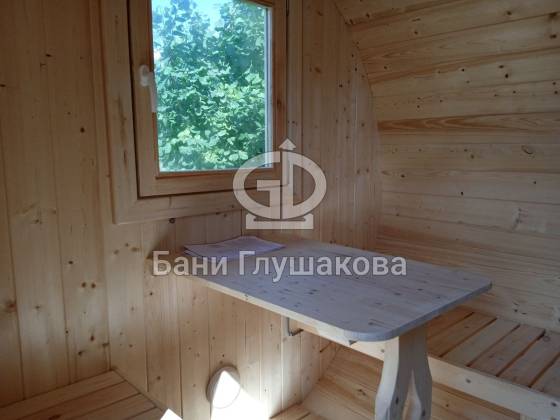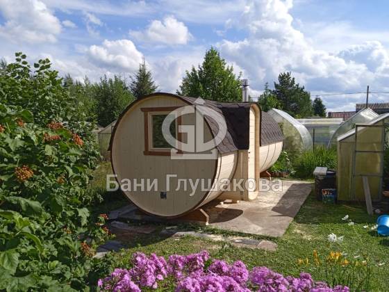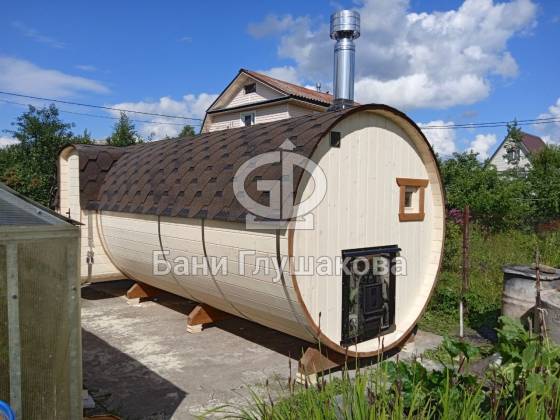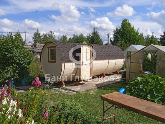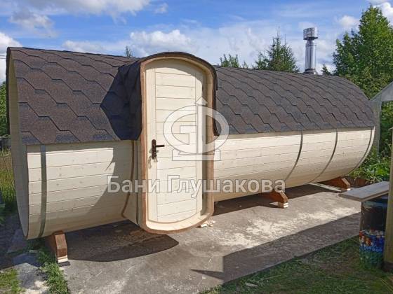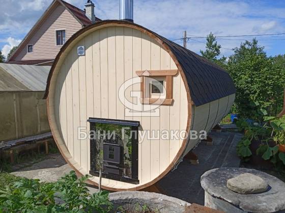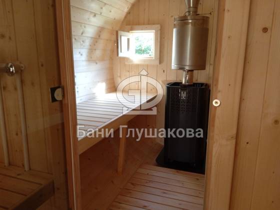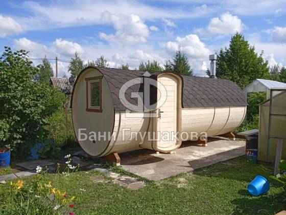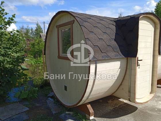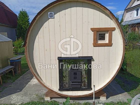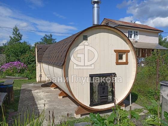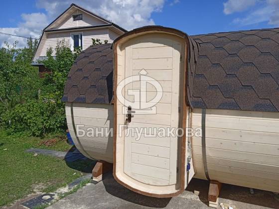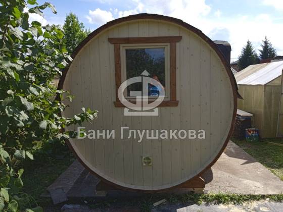 Круглая баня бочка «Кашира» с «Корабельной» дверью