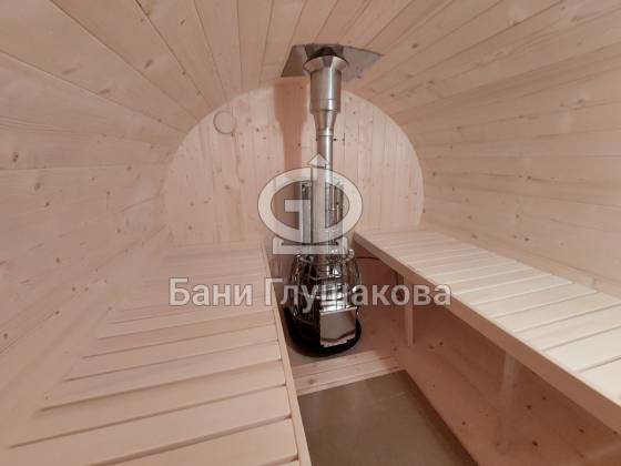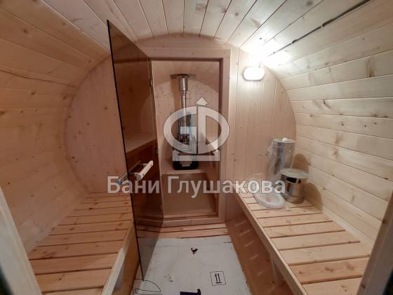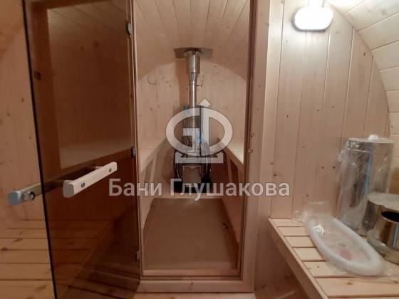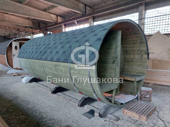 Видимо, в мире бань тоже есть свои модные тенденции. В один год популярные одни проекты, на следующий — другие. Года два назад самой продаваемой была именно овальная баня бочка. Сейчас их заказывают пореже, поэтому особенно рад показать вам эту баньку.
