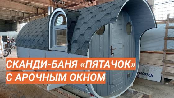 Баня «Пятачок» с арочным окном в скандинавском стиле