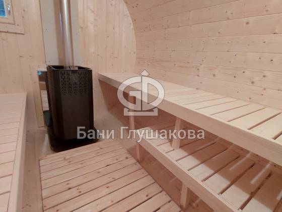 Круглая баня-бочка по проекту «Коломна»