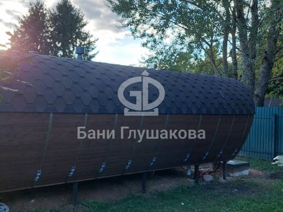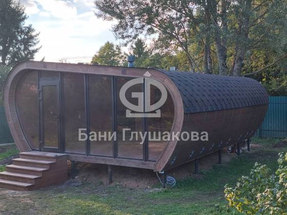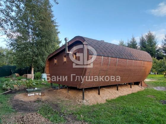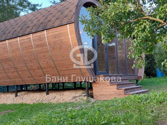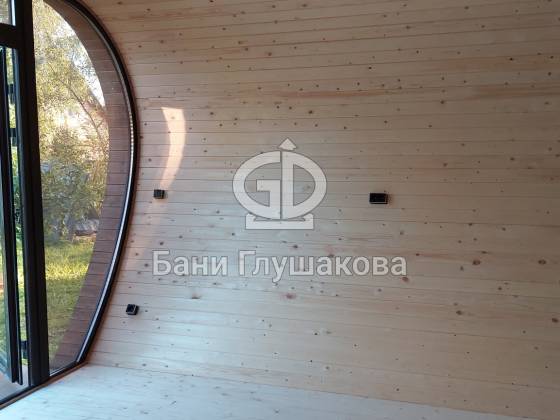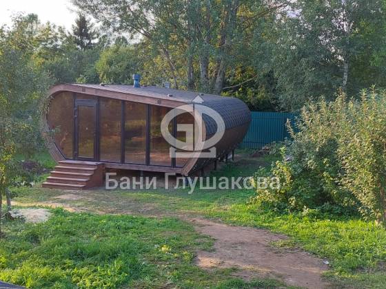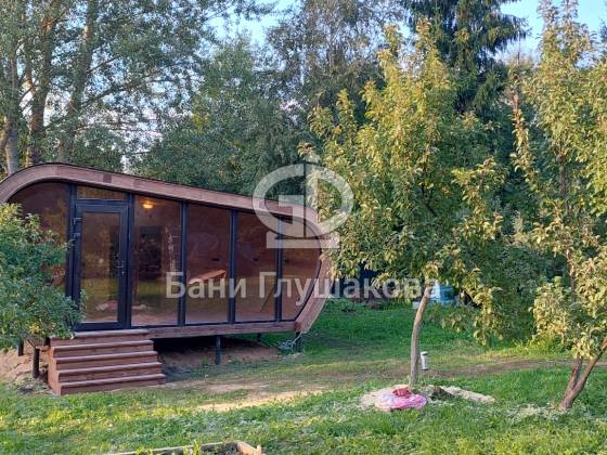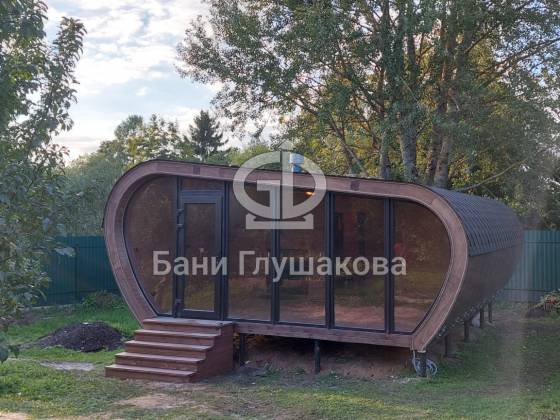 Готов новый объект, который очень меня впечатлил. Это баня (даже скорее дачный домик) по проекту «Танк Армата». Размер 5 на 7 метров. С потрясающей геометрией. С шикарным панорамным остеклением. В отличной комплектации.