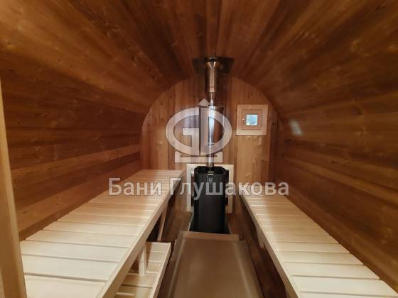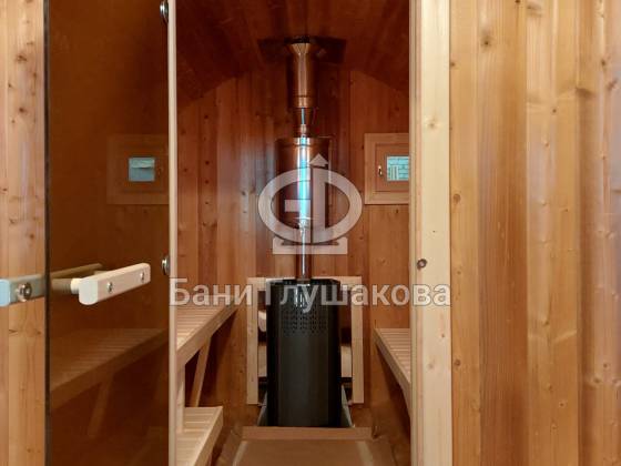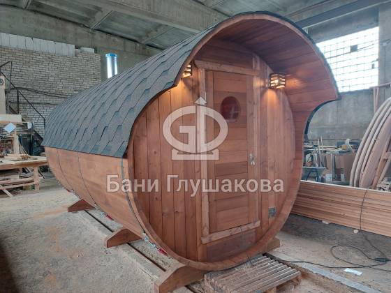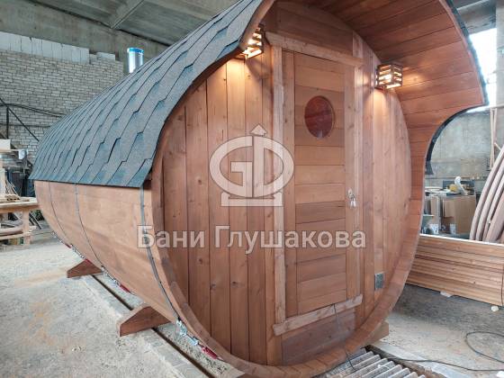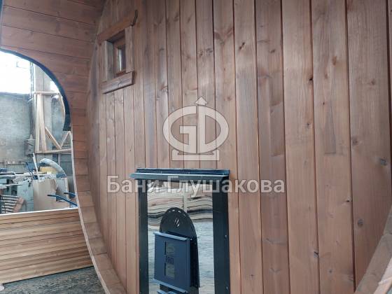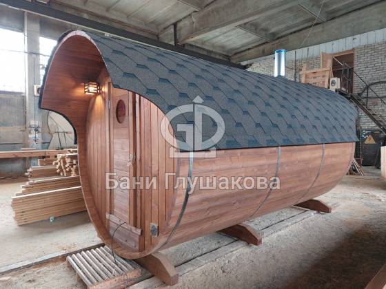 Потихоньку наши клиенты начинают отдавать предпочтение баням из термомодифицированной доски. Даже вот совсем миниатюрную четырёхметровую бочку заказали из ТМД. И правильно сделали.