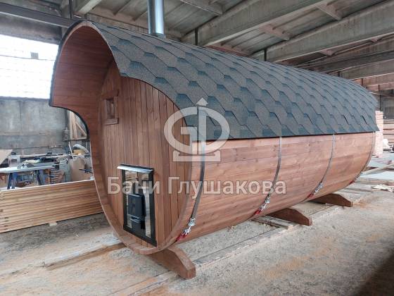 На видео обзор круглой бочки под заказ: 2,3 на 4 метра, топка на улицу и два козырька. Это обосновано. Почему объясняю в видео. Приятного просмотра!