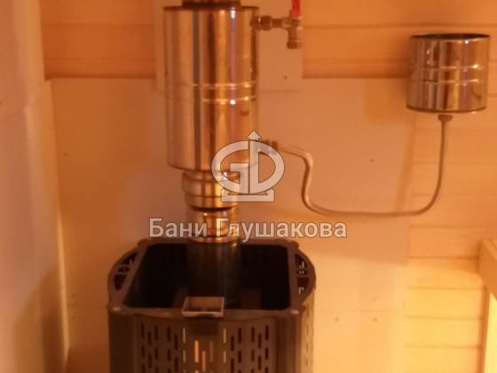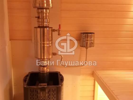В этой бане интересная комплектация, которая вобрала в себя несколько наших последних улучшайзеров: принудительную вентиляцию «Димасту» и обливное устройство. Рад, что клиентам нравится.