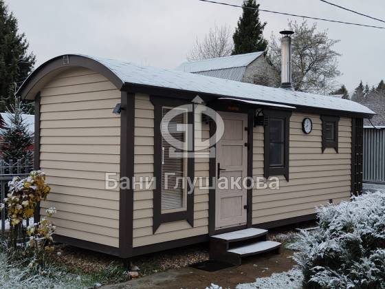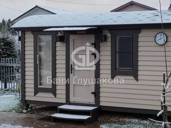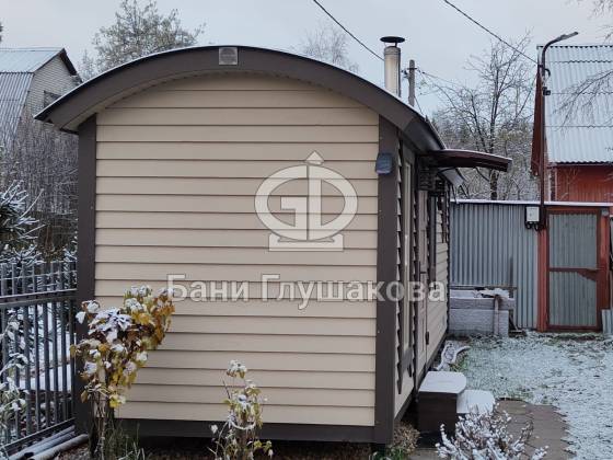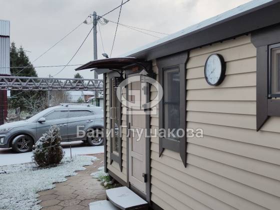 Эта баня около года служила выставочным образцом на нашей московской площадке. Летом 2022 года её купили, забрали и подарили любящий дом.