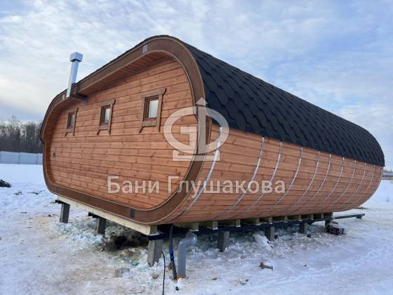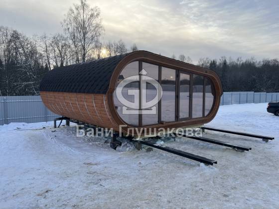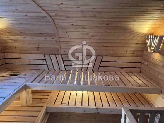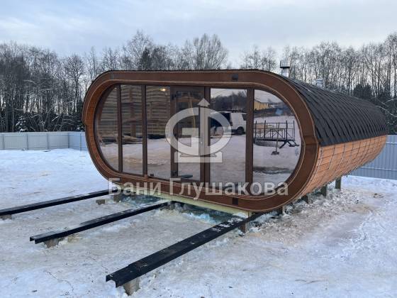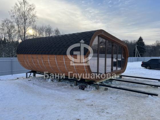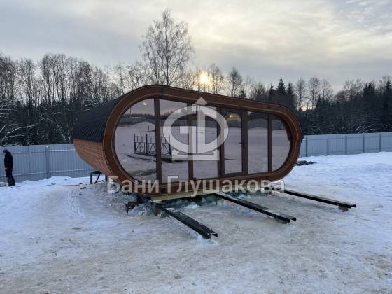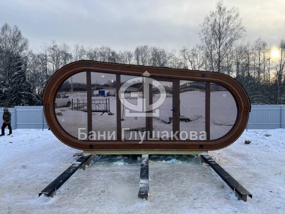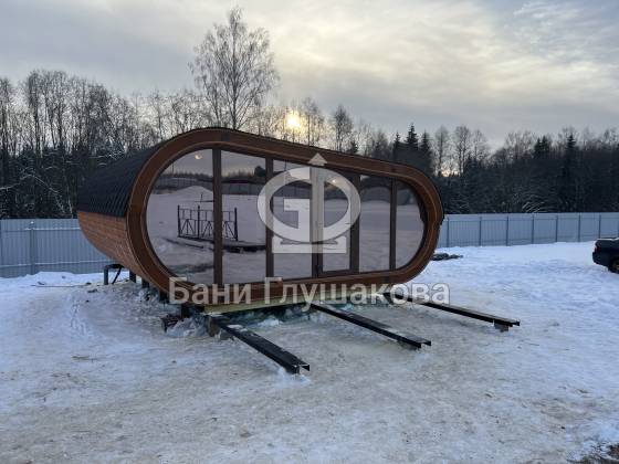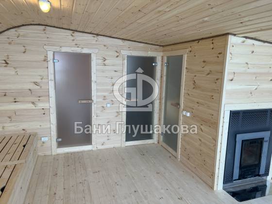 Баня, конечно, самолёт. Дорогая, совершенная, продуманная. C шикарным панорамным остеклением. Одна из последних наших работ.