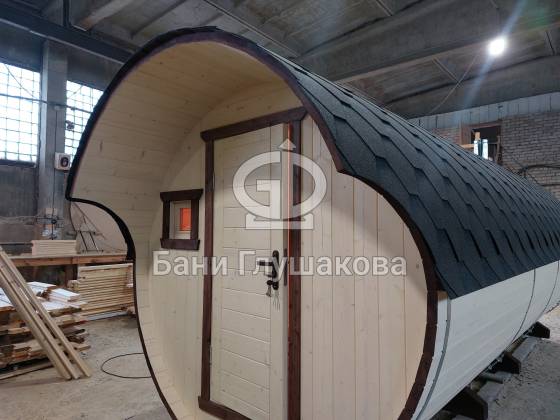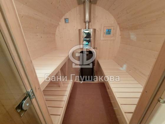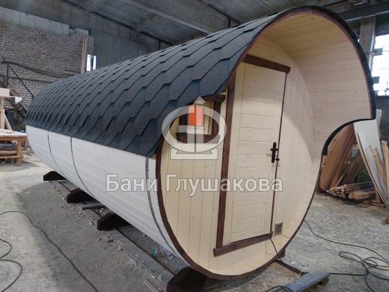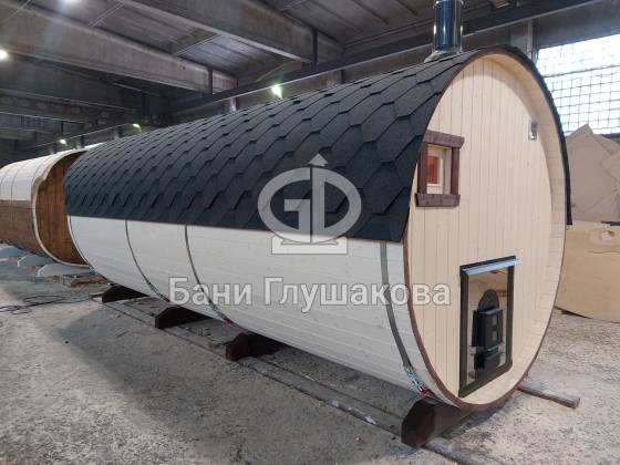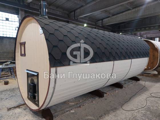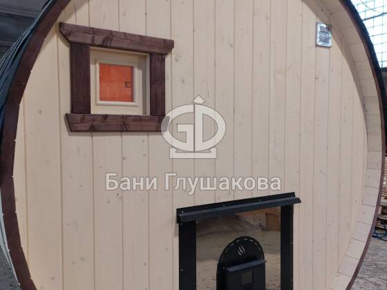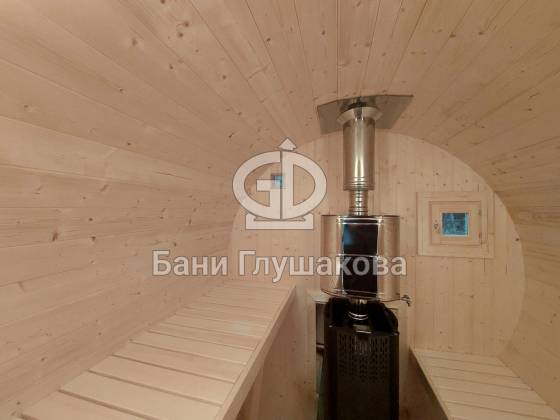 Круглая баня бочка 2,3х5,9 с выносной топкой