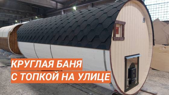 Небольшой обзор хорошенькой бани бочки с выносной топкой на улицу. Баня большая — 2,3 м в диаметре, 5,9 м в длину по козырьку. Ровно такая же баня стоит у нас на территории производства для собственного пользования.