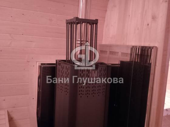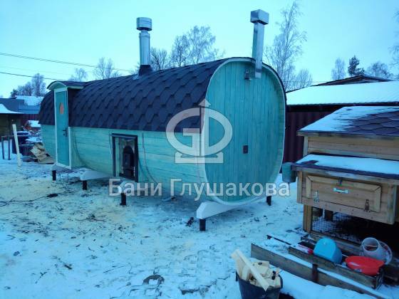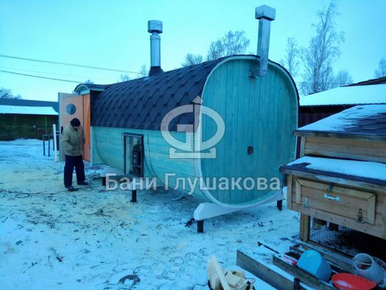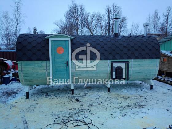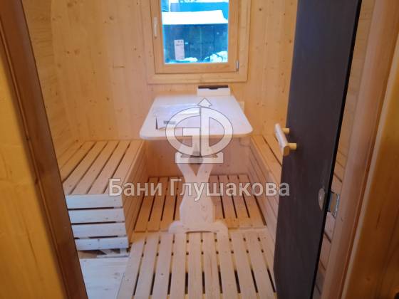 Собрали добротную квадробочку со входом по центру и выносной топкой. Размер 2,3х5,9 метров. С душем и вентиляцией «димасту». Толковая банька получилась.