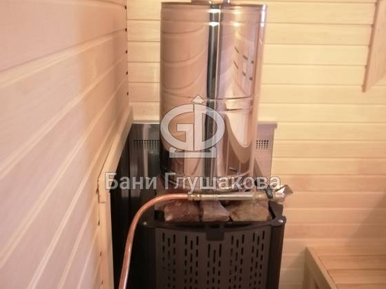 Как пример «Буханочка» на фото. Её размер 2,5 метра в ширину и 6 метров в длину. Вроде бы и не намного больше стандартной перевозной «Буханочки» (там ширина 2,2 метра), но разница ощущается. Тут и комната отдыха просторнее, и в парной печь удобнее встаёт.