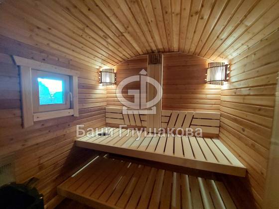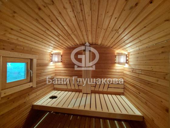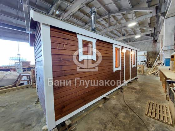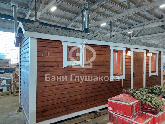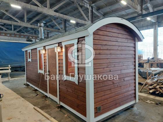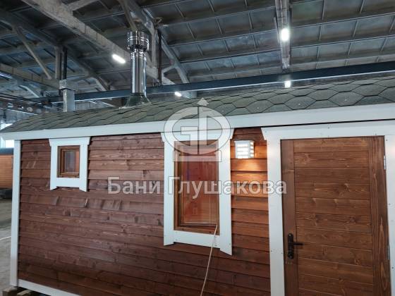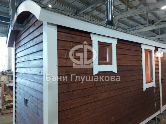 Эта перевозная каркасная баня «Буханочка» примечательна тем, что в ней сделана максимально хорошая вентиляционная система. Внедрено всё то, что делает бани Глушакова комфортными.