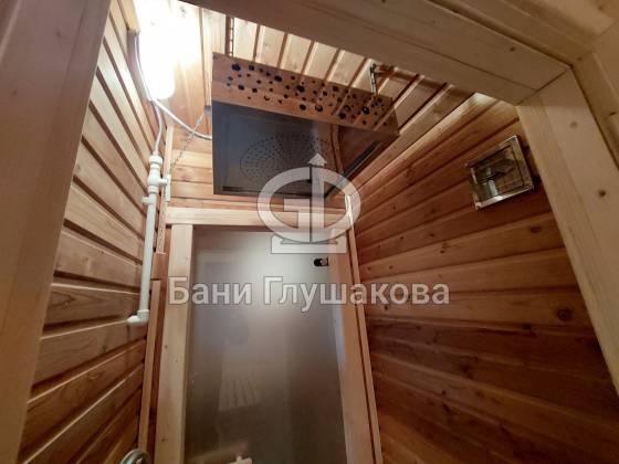 Вместе с душевой системой установили обливное устройство «Обливасту», чтобы получать максимальное удовольствие от баньки. Всё-таки один раз живём.