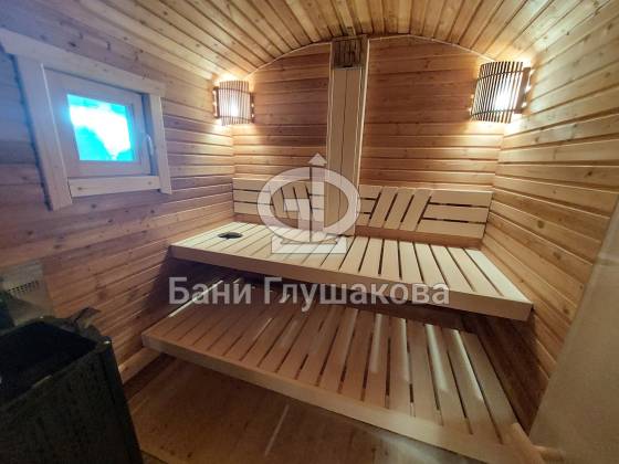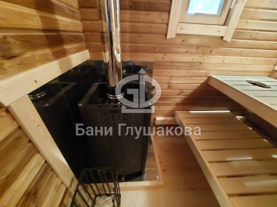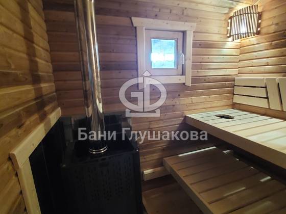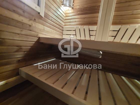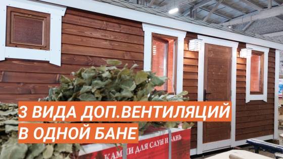 Баня стандартного размера 2,2 на 6 метров на 3 отделения. Парная сочетает в себе 3 вида дополнительной вентиляции: