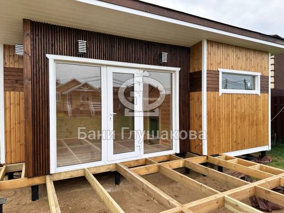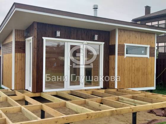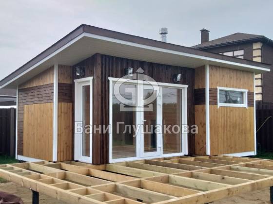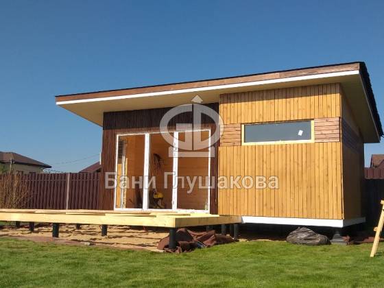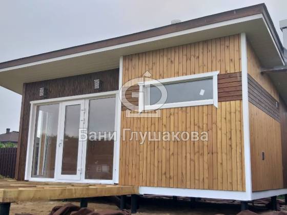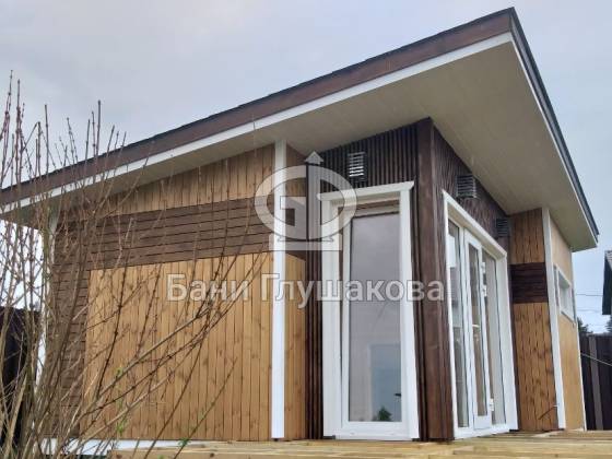 Завершили работу над первой баней по новому проекту «Суоми». Отделка планкеном, стильная односкатная крыша, улётное остекление и уютная терраса-подиум — фирменные фишки этой баньки.