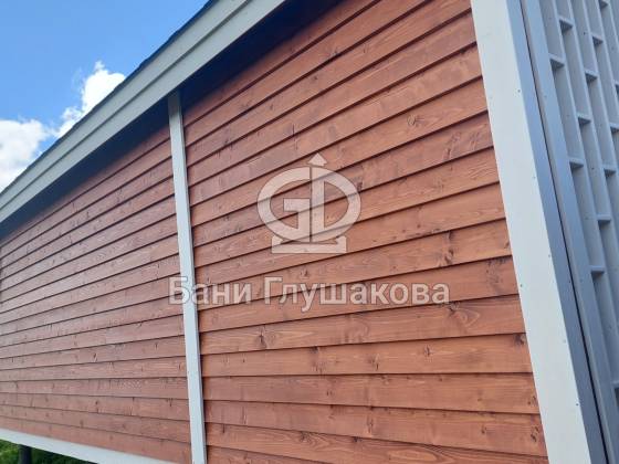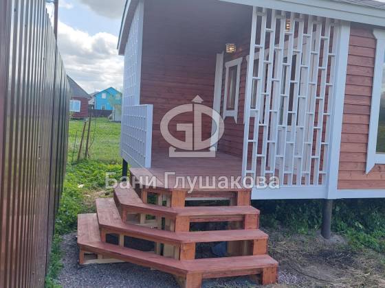 Сдали очередной классный объект: каркасную баню «Бурже» с террасой в приятном большом размере 4 на 8 метров.
