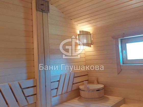 Красивая, удобная, оснащённая улучшалками вроде вентиляции «димасту», обливного устройства и термодоски в душевом помещении.