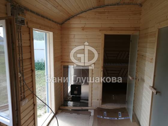 По сравнению со стандартным размером 2,2 на 6 метров эта баня кажется оооочень большой и просторной. Безусловно, такой пользоваться удобнее.