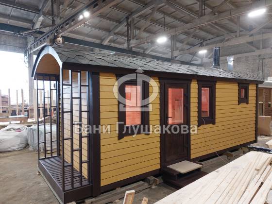 Делаю обзор на баньку — и сам радуюсь. Суперская «Буханочка» с дровяником в нарядном цвете: покраска Эскаро Веранда, цвет 502 Х, обводка Эскаро Веранда, цвет RAL 8017.