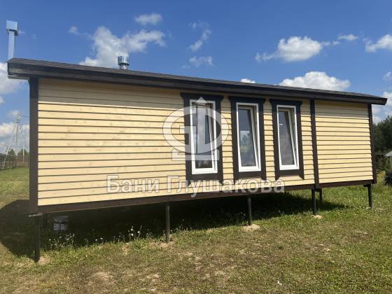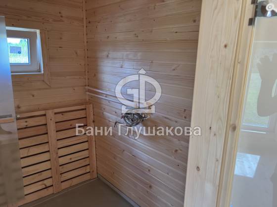 Завершили работу над каркасной баней «Бурже» 5,3х8 с террасой. Лаконичная и нарядная снаружи, просторная и удобная внутри.