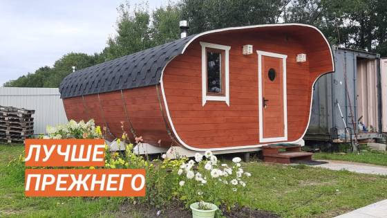 Так произошло и с баней «Танк» из бочковой доски, которую мы построили в конце мая по обновлённому проекту. Строили, к сожалению, из ёлки. На тот момент мы не видели большой проблемы. Однако, она была.