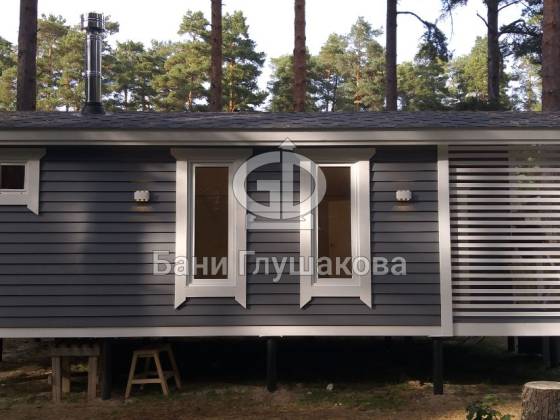 Все-таки очень идет бане «Бурже» такая спокойная скандинавская расцветка. Выглядит очень стильно! Баня покрашена аналогом Тиккурилы краской Эскаро Веранда.