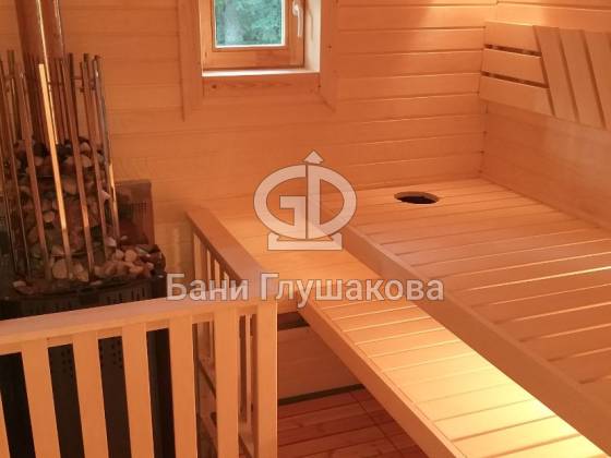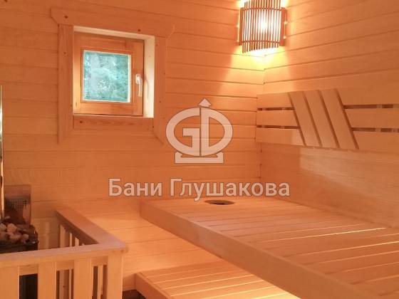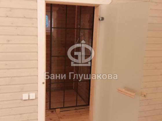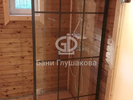 Из необычного тут подсветка по всему периметру бани и стеклянная ширма в душевом помещении. Это все идеи Заказчика, которые мы с удовольствием воплотили в жизнь.