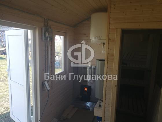 Эта «Буханочка» имеет комнату отдыха, парную и душевое помещение, оснащенное обливным устройством «Обливасту». Наша разработка, которая оказалась крайне востребованной. Потому что изначально делали для себя, протестировали, одобрили и наладили серийный выпуск для розничной продажи. А мы-то знаем толк в отличных банях!