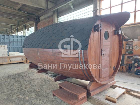 Постепенно переходим на сборку бань бочек из термодревесины. Это обдуманное и правильное решение – да, такие бани стоят чуть дороже, из-за этого спрос меньше, но поверьте: качество в разы выше!
