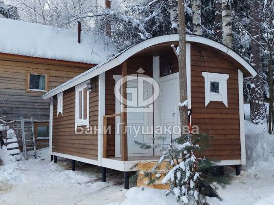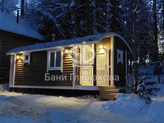 Успели достроить до новогодних каникул вот такую интересную баню «Буханочка». Это спецзаказ – проект дорабатывался под индивидуальные пожелания Заказчика.