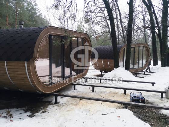 Завершили сложный объёмный объект: строили для базы отдыха баню и гостевой домик на основе проекта «Танк Панорама». Получился настоящий ансамбль!