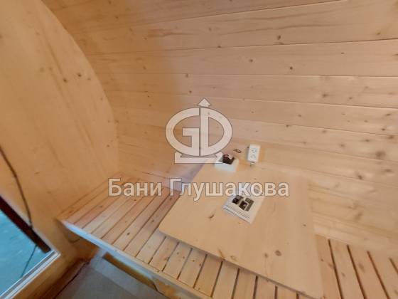 Баня бочка «Елец» увеличенного диаметра 2,3 метра и длиной 5 метров. Так как внутри всего 2 помещения, то они получаются довольно большими. Фото не передают, но баня действительно просторная. Для 3-4 человек будет очень комфортно.