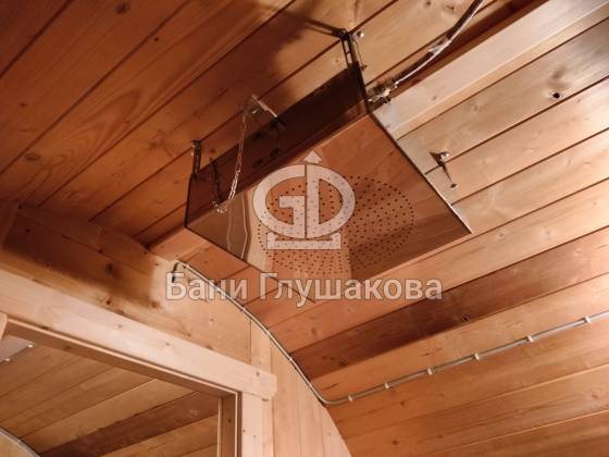 Внутри 3 отделения: предбанник, помывочное помещение, в котором установлено обливное устройство «Обливасту» и парная.