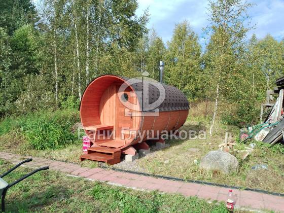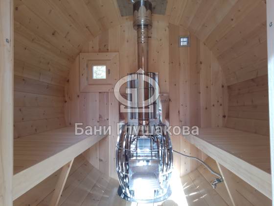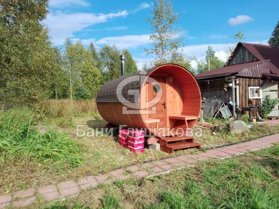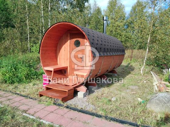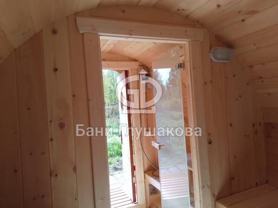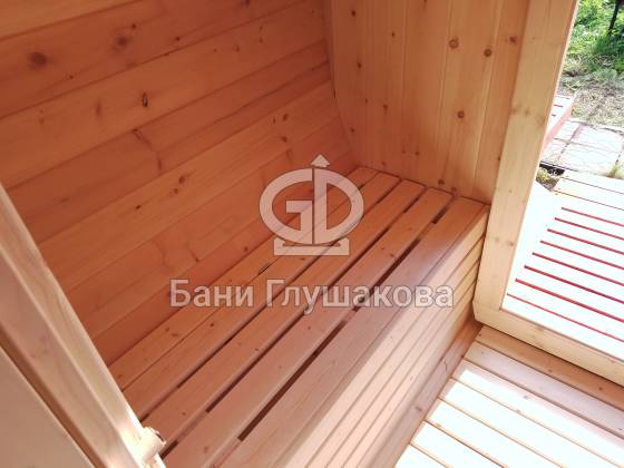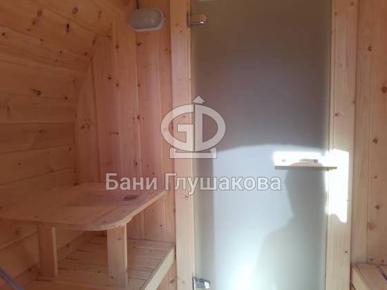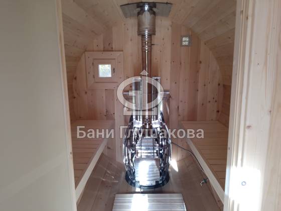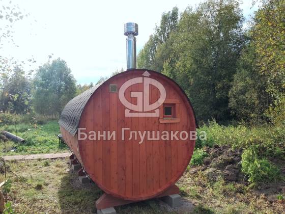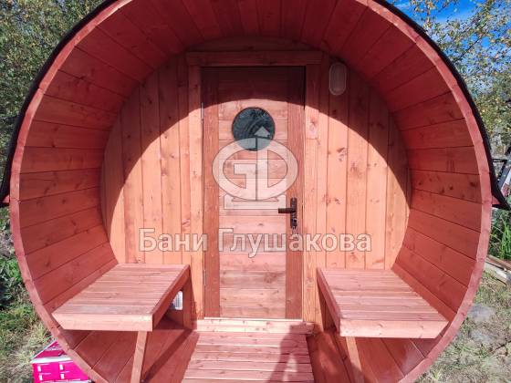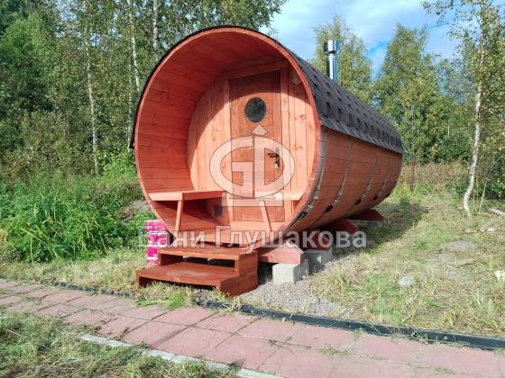 Круглая баня бочка с террасой по проекту «Мытищи»