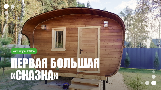 Первая баня «Сказка», собранная на участке. В ней всего 2 отделения (комната отдыха и парная), но зато они получились оооочень просторными.