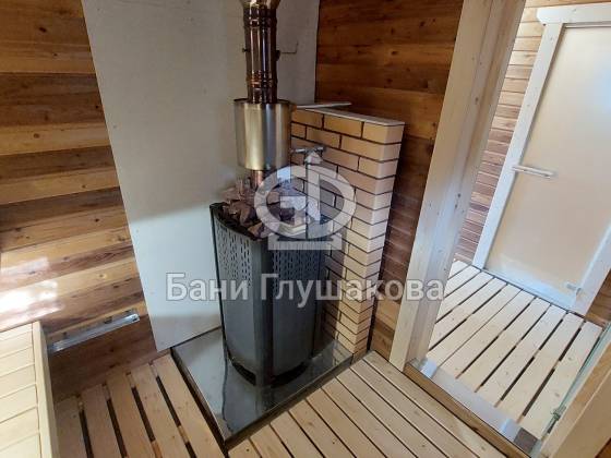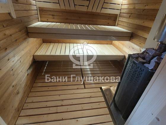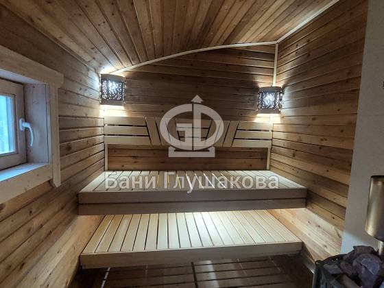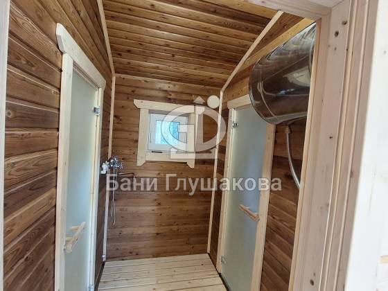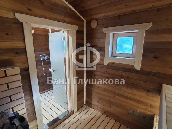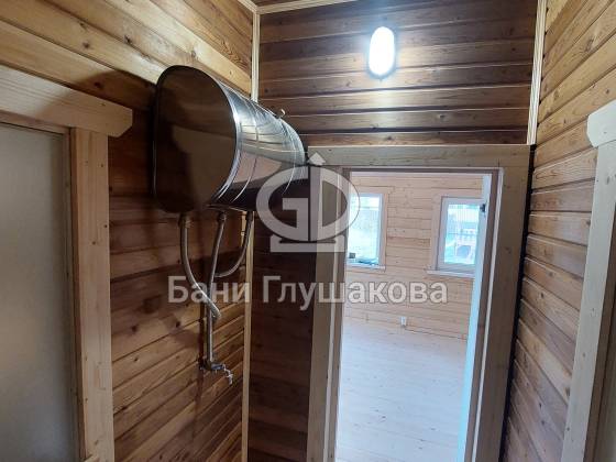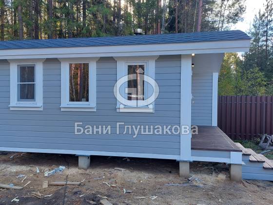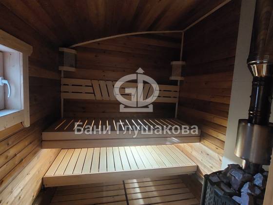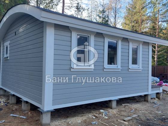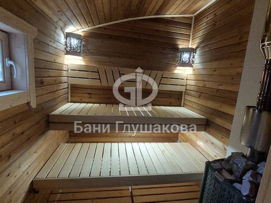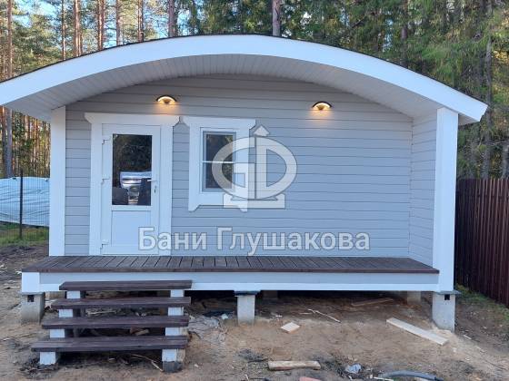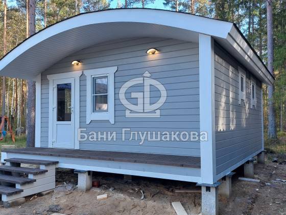 Завершили работу над очень красивой банькой с округлой крышей в Ломоносовском районе Ленинградской области. Так как строили из сухого бруса, то была возможность собрать сруб в «ласточкин хвост» – это максимально герметичное брусовое соединение углов.