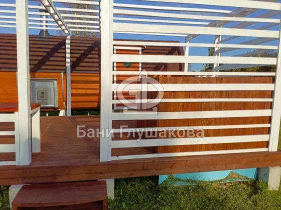 Интересное решение прислала наша Заказчица: к готовой квадробочке пристроили подиум с купелью. Получилась очень уютная зона отдыха.