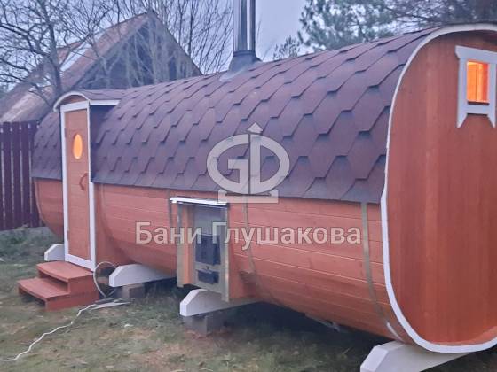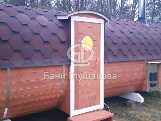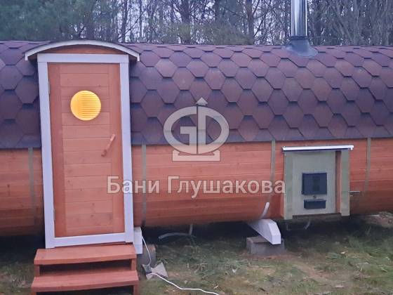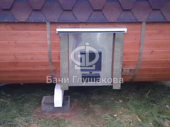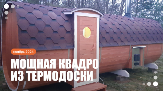Справили классную квадробочку из термодоски – 2,2 на 5,9 метров, боковой вход, выносная топка.