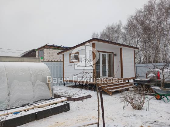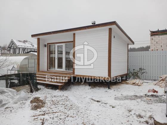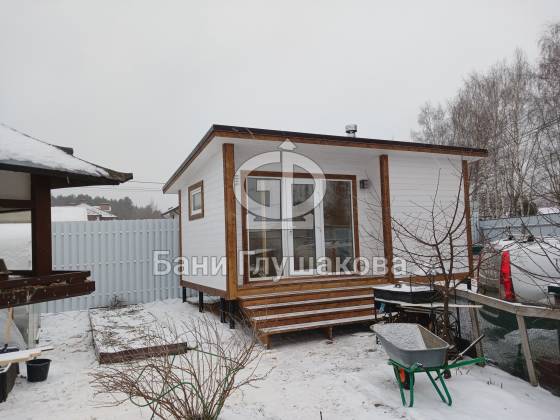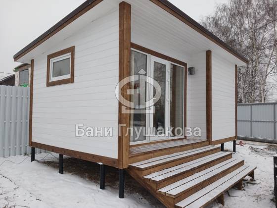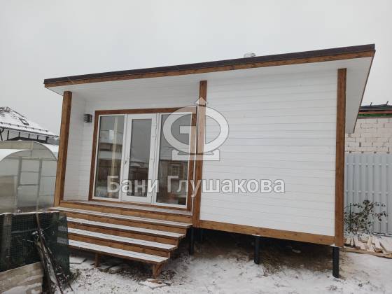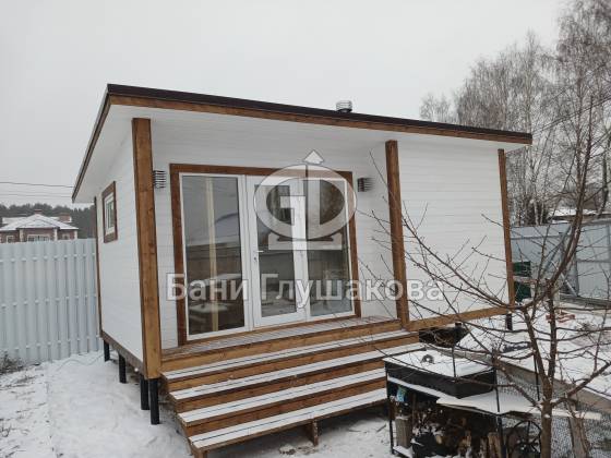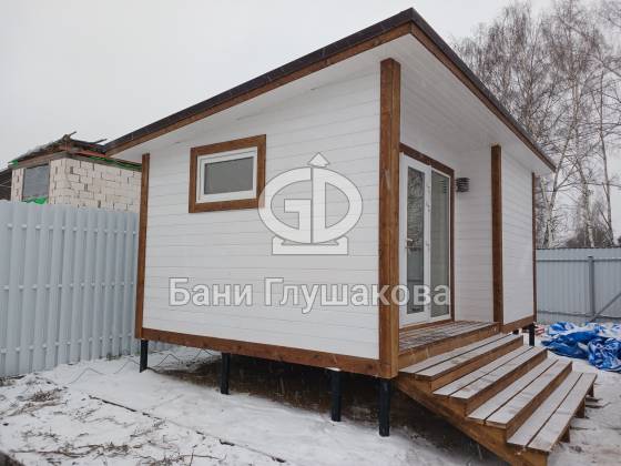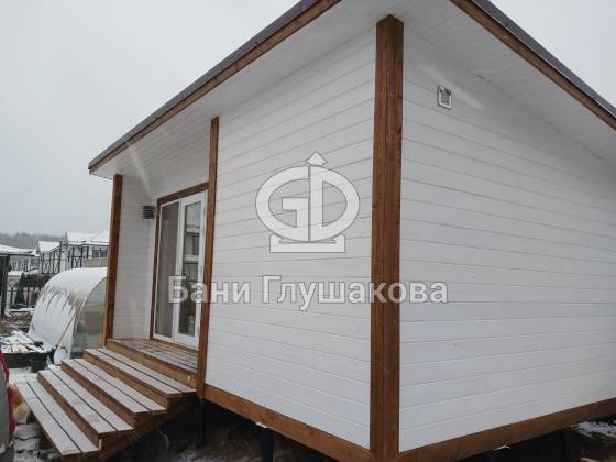 Каркасная баня «Суоми» с плоской крышей в белом цвете