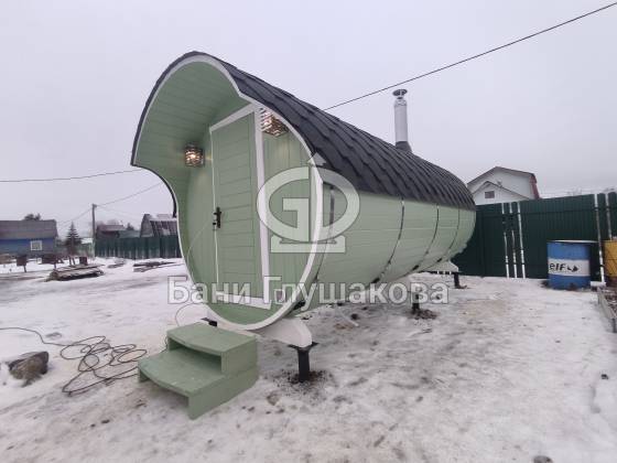 Баня на фото покрашена краской Tikkurila Vinha Classic TVT 4923 с белой обводкой. Сама нежность!