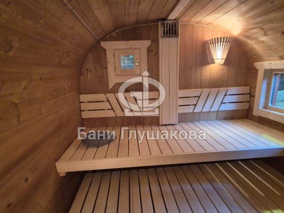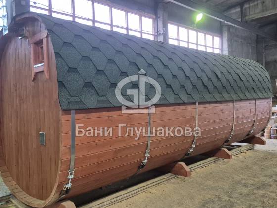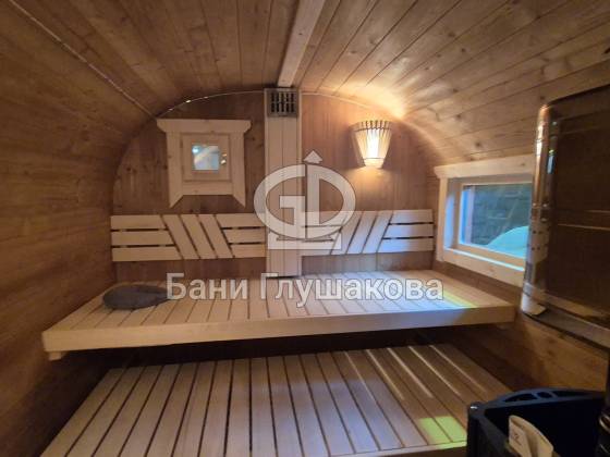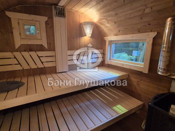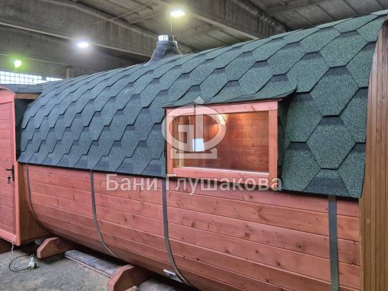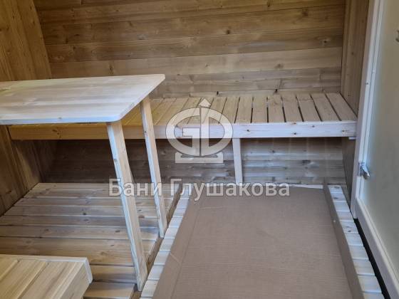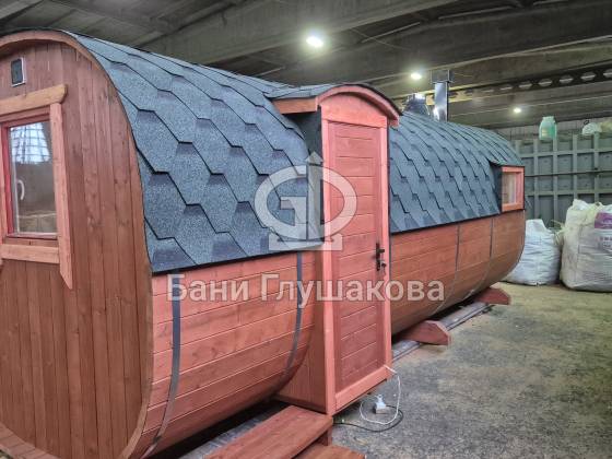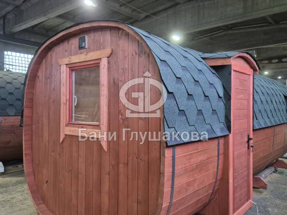 Последняя баня в уходящем 2024 году. Квадробочка размером 2,3 на 5,9 метров из термодревесины. Покрашена краской Сенеж Аквадекор в оттенке «Рябина».