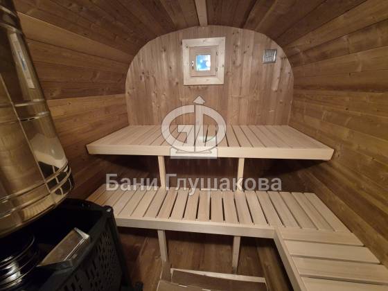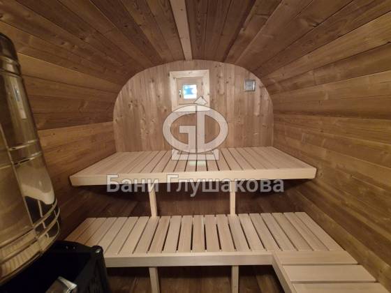Квадробочка из термодоски — это практичнее и долговечнее, чем обычная баня-бочка из ели. Термодревесина не впитывает влагу, не подвержена гниению и растрескиванию, поэтому такая баня прослужит в разы дольше без лишнего ухода. Квадробочка удобнее в использовании — за счёт прямых стен внутри больше пространства, можно поставить мебель и комфортно передвигаться. А ещё она быстрее прогревается и дольше держит тепло, что экономит дрова или электричество. Итог: меньше проблем, больше комфорта и отличная баня на долгие годы.
