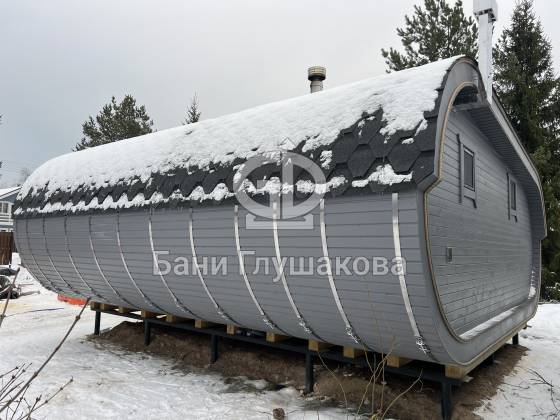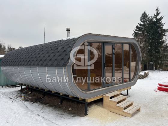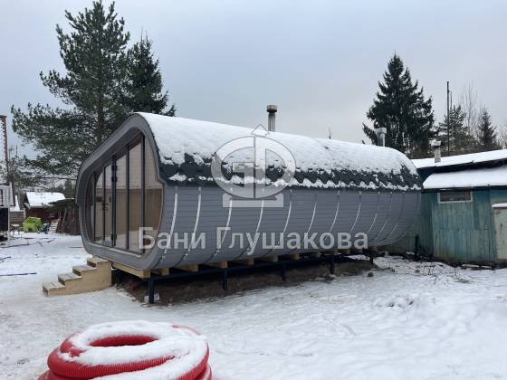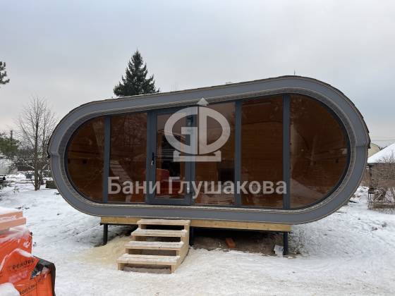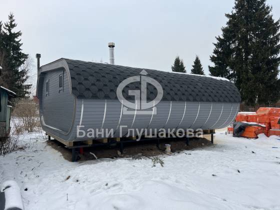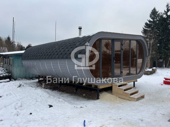 Эта стильная и просторная баня «Танк» уже построена и радует своих владельцев комфортом, современным дизайном и продуманной планировкой.
