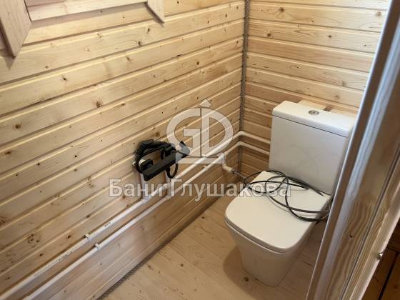 - Ну и как в любой современной бане здесь есть санузел для разных неожиданностей.
