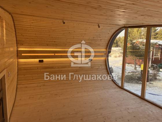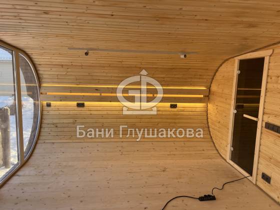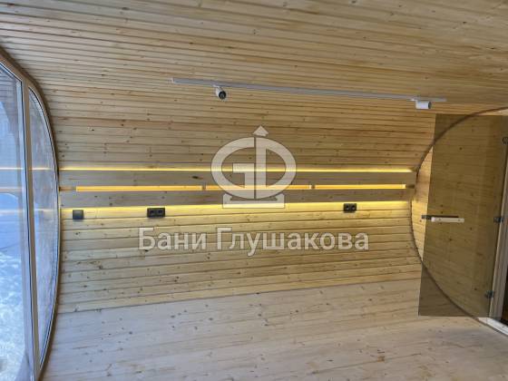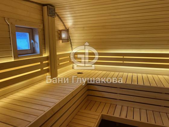 - Комната отдыха – уютное светлое пространство для релакса, где приятно провести время после банных процедур. Оцените классную подсветку!