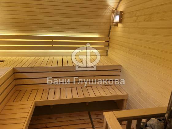 Просторная парная – удобные угловые полки обеспечивают комфортное размещение.