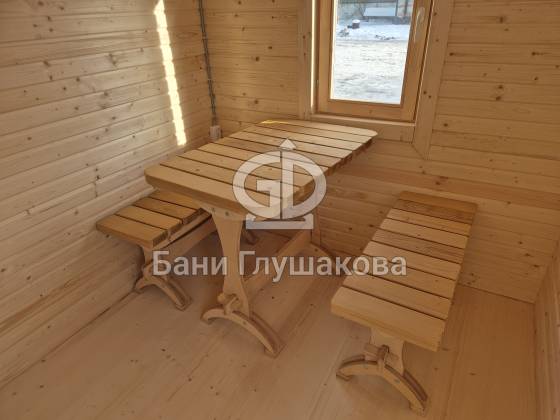 Баня сочетает удобство, современный дизайн и функциональность. Готовы построить такую же под ваши пожелания. Свяжитесь с нами для обсуждения деталей.